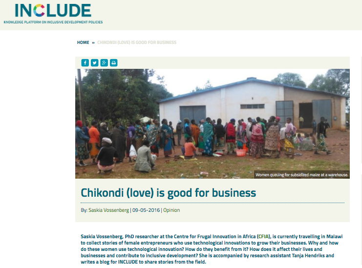 In 2016 PhD researcher Saskia Vossenberg travelled to Malawi to collect stories of female entrepreneurs who use technological innovations to grow their businesses. She investigated why and how these women use technological innovation; do they benefit from it? How does it affect their lives and businesses and contribute to inclusive development? In this final blog she analyses her data and makes some suggestions for policymakers: Are we targeting the right group? And with the right interventions? What matters are interventions that enable processes and outcomes of empowerment and improved well-being, beyond an increase of income and assets.